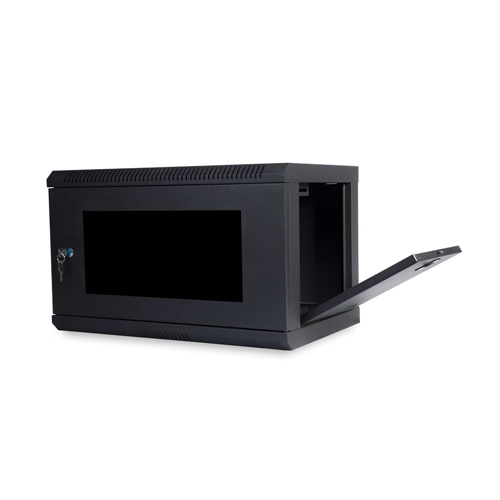 رک دیواری ۶ یونیت معمولا از پشت به دیوار پیچ می شود و اگر تجهیزات سنگین باشند بر زیر آن پایه قرار می گیرد.